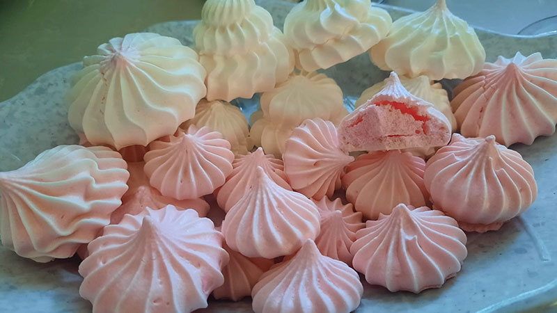 נשיקות מרנג מקצף חלבונים פריכות בחוץ וספוגיות בפנים נמסות בפה. אפשר להכין בשילוב אבקות צבעי מאכל